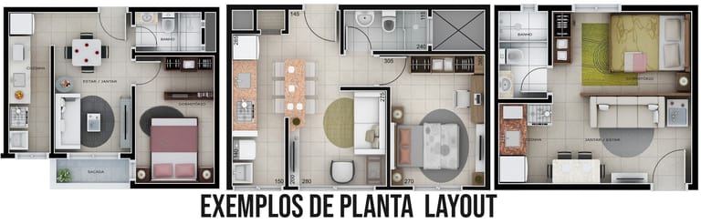 As perspectivas 3D são imagens ilustrativas para visualização do espaço, não modelos renderizados com exatidão de produto.